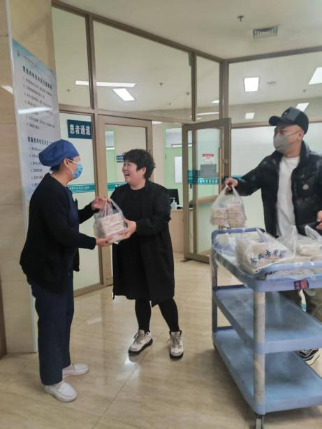 党员们将饺子送至手术室、急诊、检验等一线值班人员手中。