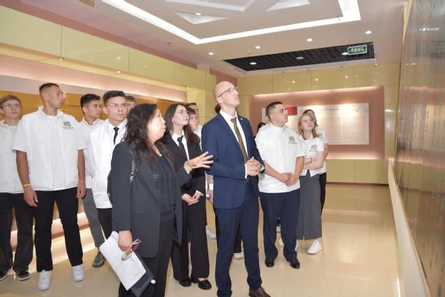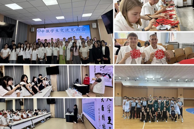 学生互动环节充满活力与温情。代表团来访期间,两校学生共同举办了一场精彩的篮球友谊赛;组织了学生见面交流会,中俄学生分享了各自城市和校园的情况,加深了双方对彼此国家文化与教育体系的了解;在文化体验课程上,俄罗斯学生体验了非遗剪纸和书法,感受到中国传统文化的博大精深。