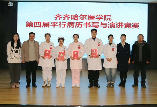 12月16日下午,由齐齐哈尔医学院主办、附属三院承办的第四届平行病历书写与演讲竞赛决赛在附属第三医院门诊综合楼四楼多功能厅举行。医院管理处首席研究员李春旭作总结讲话,附属第三医院党委书记孙茂林为竞赛致辞,医院管理处副处长现场宣读竞赛规则,附属第二医院副院长刘波出席大赛担任评委,附属第二医院医院办公室副主任王志超主持竞赛,来自附属第一、二、三、五(大庆龙南医院)、八(大庆市第三医院)、十一(北大荒集团总医院)6所附属医院的30名选手参加此次竞赛。经过激烈角逐,附属二院参赛选手咸阳荣获一等奖,关宝宇荣获二等奖,邢芳芳、姜佳瑶、王晓荣获三等奖。
