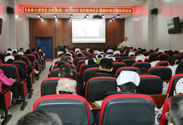 12月25日下午,附属二院在培训基地一楼多功能厅召开“医路相伴”健康科普直播培训会。党委书记刘增良作动员讲话,市融媒体中心乡村广播副主任李佳受邀作专题培训,宣传科科长高秀文主持会议,全院干部职工500余人通过线上及线下相结合方式参加培训。