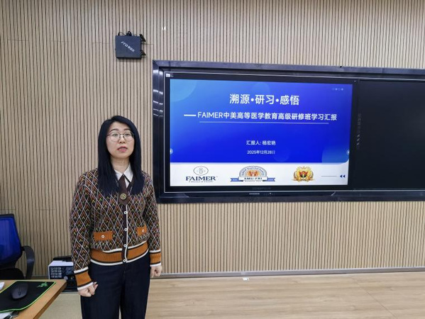 12月28日,药学院举办教师培训交流会,此次汇报中杨宏艳副教授针对FAIMER中美高等教育高级研修班的学习内容进行汇报与分享。本次交流会由药学院书记丛凯主持,药学院全体教师参会。此次研修紧跟国际医学教育与改革前沿,传播先进教育理念与教学方法,也为我院搭建了高质量国际教育交流平台,更有效拓宽了参训教师的教育视野与专业认知,为学院深化教育教学改革、提升办学质量注入了新的动能。