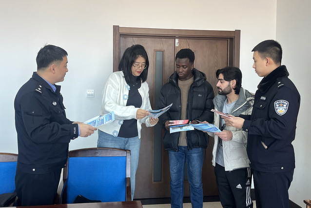 座谈中,温宪春对市公安局出入境管理局、建华区公安分局、辖区派出所长期以来给予学院留学生工作的大力支持和帮助表示感谢,并详细介绍了学院留学生的基本情况和管理工作开展情况。刘阳对学院留学生管理给予高度评价,并传达了市公安局出入境管理局相关工作精神,提出未来共建留学生管理互动互联机制。座谈结束后,市公安局出入境管理局工作人员向学院留学生派发了国家移民管理机构服务平台相关宣传材料,希望通过宣传学习,进一步提高学院留学生在华生活质量。