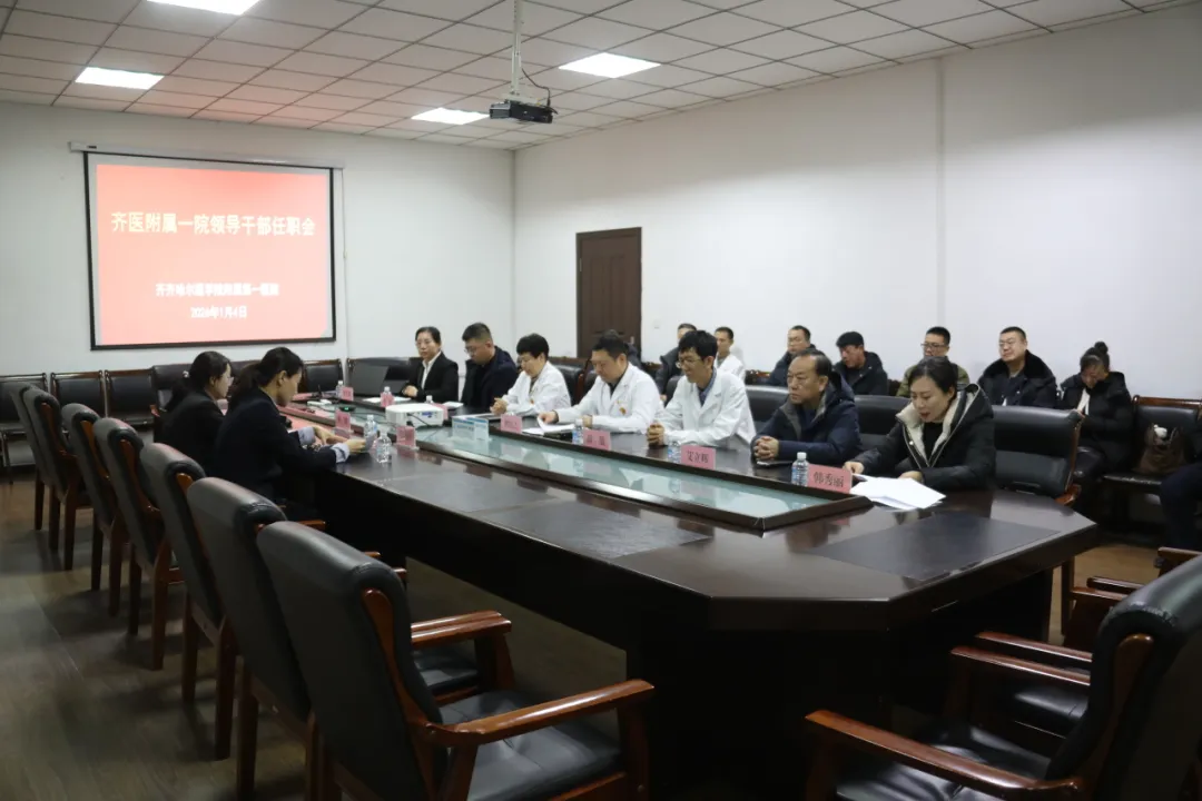 2026年1月4日,齐医附属一院召开领导干部任职会,欢迎党委副书记吴颖、副院长周扬、纪委书记韩秀丽、副院长李春香履新。学院党委副书记迟沫涵同志,组织部(离退休工作处)副部长(副处长)闻铭同志出席会议,医院领导、部分中层干部参加会议。医院党委书记刘旭之同志主持会议。