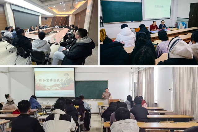 为做好学院2026年大学生征兵,尤其是应届毕业生征兵工作,2025年12月28日至30日,学院紧抓大学生征兵工作关键节点,结合工作实际,采取“线上+线下”相结合的方式,面向应届毕业生集中开展了多场次、全覆盖的征兵宣传动员活动,推动大学生征兵工作深入开展。