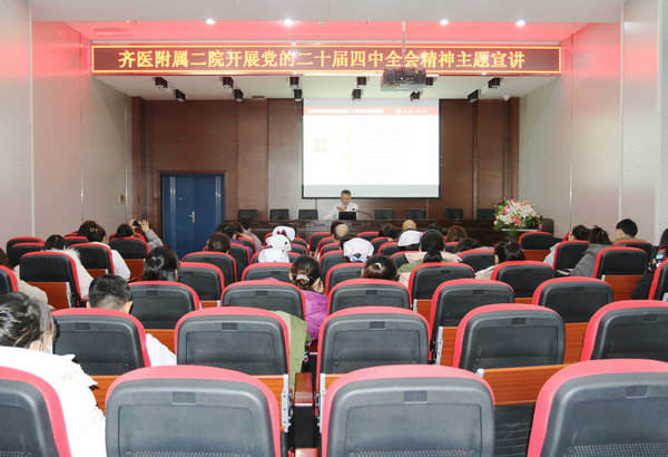 1月4日下午,齐医附属二院党委书记刘增良在培训基地一楼多功能厅为联系点支部作“党的二十届四中全会精神”主题宣讲,机关第一党支部、机关第三党支部、内科第三党支部、联合第一党支部70余名党员聆听宣讲。