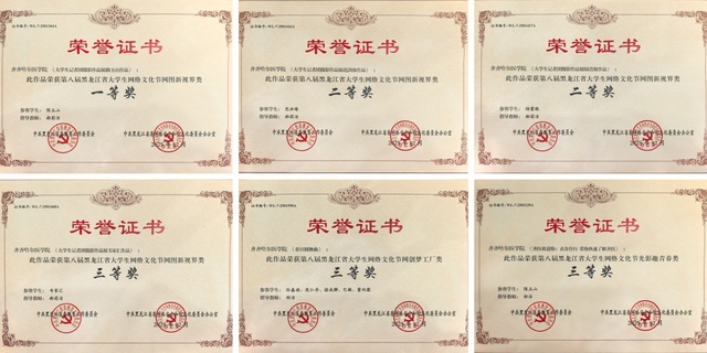近日,第八届黑龙江省大学生网络文化节评选活动结果揭晓,学院6部作品获奖。其中,一等奖1项,二等奖2项,三等奖3项。