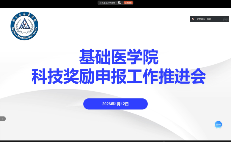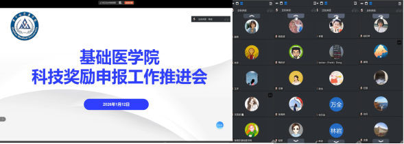为了学科建设高质量发展,实现申报科技奖励的预期目标,1月12日,基础医学院线上召开了科技奖申报工作推进会,旨在精准落实科技奖励申报要求,系统推进基础医学领域报奖工作。各科室主任、科研骨干、导师、博士及科研科工作人员参会。