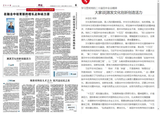 党的二十届四中全会召开以来,学院迅速响应、统筹部署,将深入学习宣传贯彻全会精神作为首要政治任务和教学科研重点。通过组织专题集体备课会,引导教师准确把握全会精神核心要义,推动相关内容全面融入思政课程体系,实现理论讲授与政策解读的有机统一。同时,加大宣传阐释力度,选派骨干教师加入市委理论宣讲团,举办“青马工程”专题讲座,有效拓展理论宣传的覆盖面和影响力。并积极开展理论研究,此前曾在省委重要理论刊物《奋斗》杂志发表解读文章,围绕“五年规划与中国式现代化”展开论述,为政策实践提供学理参考。此次在《黑龙江日报》发文,进一步展现了学院教师持续深化党的创新理论研究的最新成果。