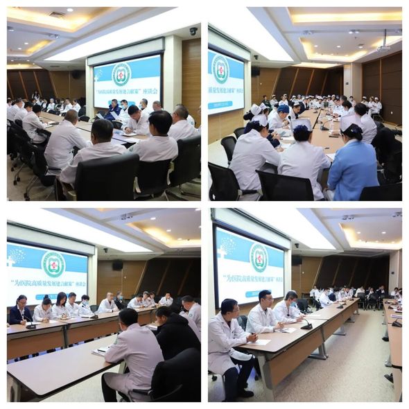 为深入贯彻落实新时代卫生健康工作方针,锚定医院高质量发展核心目标,充分激发全院职工主人翁意识,凝聚发展合力,1月14日、15日下午,我院召开“为医院高质量发展建言献策”座谈会。各临床、门诊医技主任、副主任、护士长及各临床、医技骨干参加座谈并围绕医院发展关键议题畅所欲言、建言献策。领导班子成员出席座谈会,认真听取意见建议,与职工代表深入交流探讨。