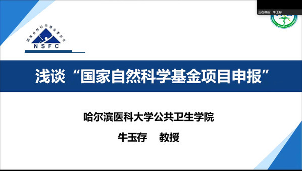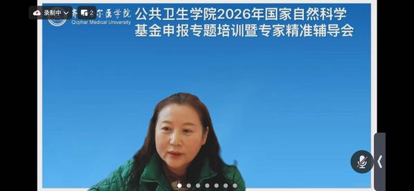 为进一步提升公共卫生学院科研人员的国家级项目申报能力,推动高水平科研项目落地,公共卫生学院于2026年1月14日组织召开线上“国家自然科学基金申报专题培训暨专家精准辅导会”。本次培训特邀哈尔滨医科大学牛玉存教授作专题报告,会议由公共卫生学院院长白丽主持,学院全体教师及研究生积极参与。