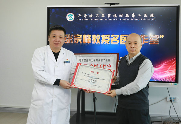 齐医附属二院副院长刘波为哈医大附属二院张宗峰教授颁发聘书