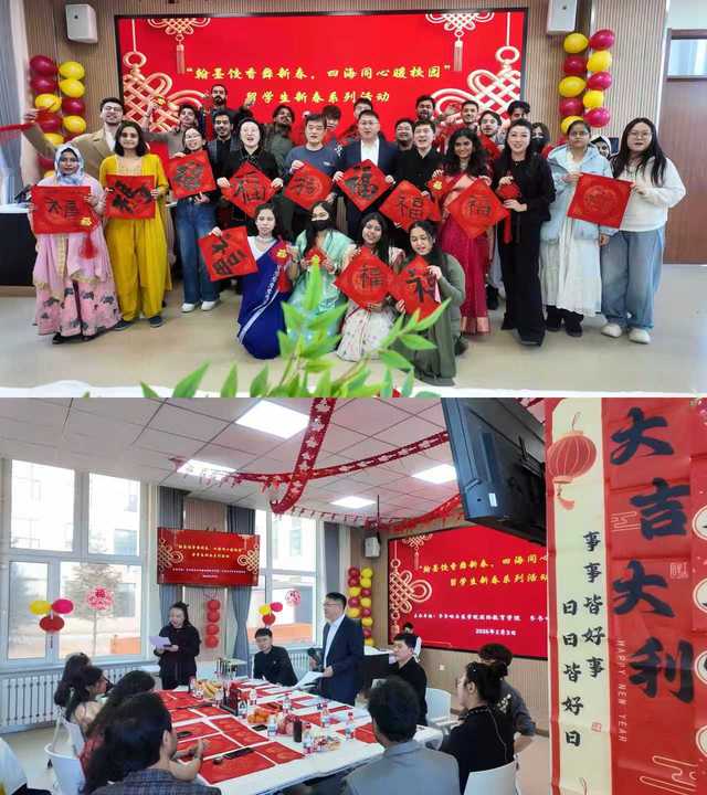 新春将至,岁寒情暖。寒假期间,学院副院长裴俊瑞与国际教育学院院长温宪春、副院长关晶晶、王晓丽及留管老师等走进留学生中间,开展新春慰问活动,与留学生喜迎佳节。活动特邀齐齐哈尔市书法家协会会长崔武卿及两位老师参与,以笔墨寄情,共贺新春。
