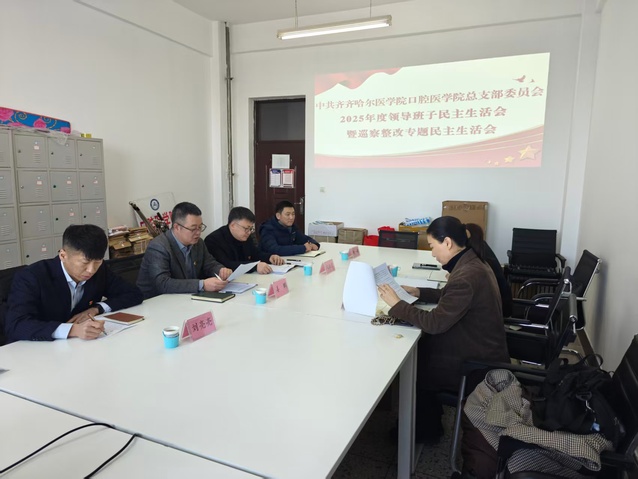 为全面贯彻党的二十大和二十届历次全会精神,深入学习领会习近平新时代中国特色社会主义思想,进一步巩固和拓展中央八项规定精神的学习教育成果,切实落实上级党组织的各项决策部署,按照统一部署安排,2月1日上午,口腔医学院党总支在主楼南区330会议室召开2025年度领导班子民主生活会暨巡察整改专题民主生活会。学院党委副书记、工会主席迟沫涵同志及纪委办公室副主任王海瑞同志到会指导。会议由学院党总支书记姜鹏同志主持,领导班子全体成员参加,科级干部列席会议。