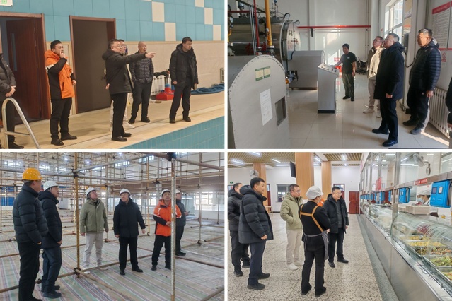 于海涛一行先后前往游泳馆锅炉房、泳池处理机房、二次泵房、锅炉房、变电所配电室、食堂等重点场所进行拉网式检查,确保各类设备设施运行安全。检查组重点查看了安全出口是否封闭堵塞、疏散标志是否完好、电气线路是否老化破损、是否存在违规私拉乱接电线等问题。在秋实城网架结构维护施工现场,于海涛严格对照安全标准,查看施工现场规范用电、消防器材配备等安全管理情况,强调务必保证施工现场安全,不放过任何一处风险隐患,切实把安全责任做实压细到每个岗位、每个环节。