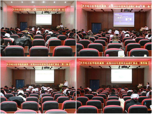 2026年1月23-24日、30-31日,齐齐哈尔医学院附属第二医院召开了2025年度科室总结汇报会。来自临床、医技、行政机关及后勤保障部门的92位科室负责人以PPT形式作工作汇报。全体领导班子成员出席会议。