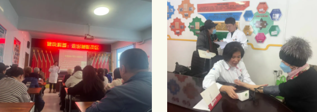 讲座过后,大家排起井然有序的队伍开始检查身体,本次义诊为大家免费测量血压、血糖,对血压异常的群众,王雷医生现场给予耐心的指导,并互留联系方式。