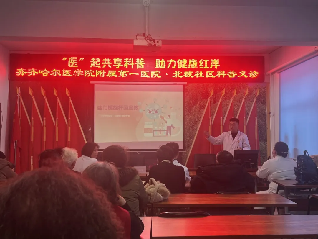 消化内科二病区马博洋医生,用生动的语言给大家介绍“胃内的不速之客”幽门螺旋杆菌的危害、传播途径及治疗方法,现场一位大姨听过讲座后激动的说:“怪不得我胃经常胀痛,去医院检查也没发现啥问题,听了马医生的介绍可能是这个菌在作怪吧!小马医生讲的真明白!”