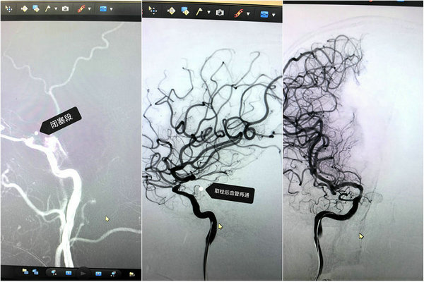 暖心提示:急性脑卒中可防、可治、不可拖!早识别、早就医、早干预,脑梗死患者发病后的 6 h是进行动脉取栓治疗的黄金时间。介入取栓术,为大脑重启血流,为生命争取希望,避免严重的脑血管后遗症的发生。
