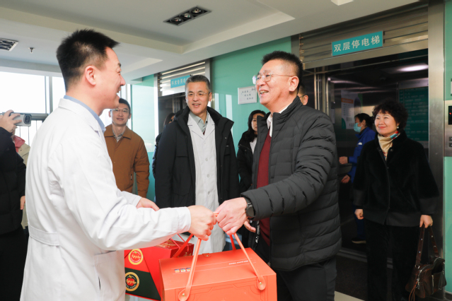 结束校园走访后,赵光书记一行到附属第三医院走访慰问一线医务工作者。“大家新年好!感谢你们的坚守和辛勤付出!”赵光书记详细了解询问节日期间医疗救治和值班等情况,并向大家致以崇高敬意和美好祝福。赵光书记表示,广大医护人员舍小家、为大家,用坚守诠释医者仁心,用奉献守护百姓健康,是春节里最美的“敬业福”。