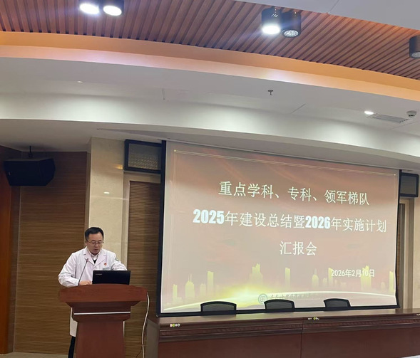 为全面总结2025年度重点学科、重点专科及领军梯队建设成效,科学谋划2026年学科发展实施路径,持续提升医院核心竞争力与医疗服务能力,2026年2月10日,我院在住院综合楼三楼第一会议室召开重点学科、专科、领军梯队2025年建设总结暨2026年实施计划汇报会。我院副院长刘忠锦、科研科科长姜敏、医务科科长苍春阳、医务科副科长冀方超、各重点学科、重点专科、领军梯队负责人及核心成员参加会议。