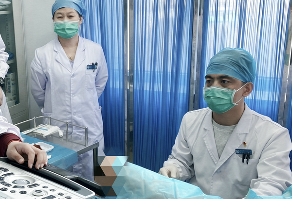 一位因“急性化脓性胆囊炎”入院的患者,收治于消化内二科。入院时,患者已腹痛多日并伴有高烧。鉴于传统抗感染治疗起效较慢,而病情紧急,为争取救治时间,消化内二科范立君主任与超声科介入团队联合协作,决定为患者实施急诊手术。在超声科主任白连杰的主持下,团队成功为患者进行了超声引导下经皮肝胆囊穿刺置管引流术(PTGD)。术中,医生在超声影像的动态监测下,将穿刺针精准置入胆囊,引出脓性胆汁,患者腹腔内高压得到迅速缓解。