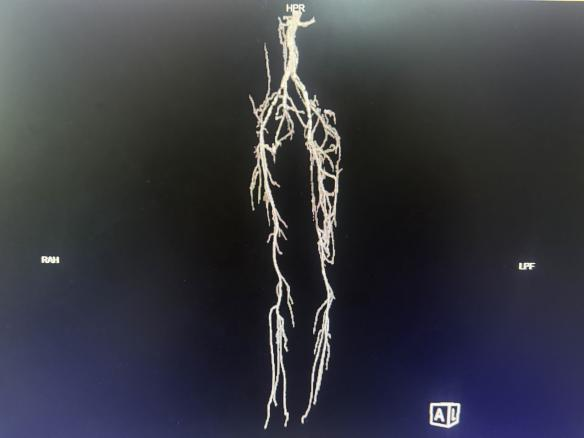 2月初,受双下肢无力困扰20余年的董女士来我院就诊,检查提示双侧髂总动脉闭塞、腹主动脉远段血栓形成,属高危TYPE D型病变,有截肢风险。结合其病程长、病变复杂等情况,我院血管外科专家团队经多方论证,为其制定腹主动脉覆膜支架分段置入+双侧髂动脉对吻的个体化手术方案。最终手术顺利完成,术后患者双侧股动脉恢复良好,间歇性跛行距离从50米延长到500米左右。
