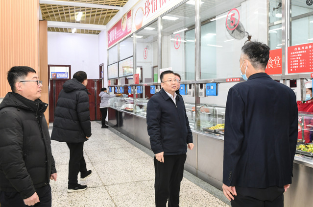 于海涛先后实地查看了变电所、二次泵房、锅炉房等能源保障关键部位,详细询问了寒假期间设备设施的维护保养、运行状态及应急预案准备情况。在食堂和校园超市,他重点围绕食品安全管理、环境卫生、物资储备及开学后服务保障方案的落实细节,细心了解了师生们关心的餐饮质量、商品供应和价格稳定等问题。同时,就寒假期间推进的秋实城三楼网架粉刷与检测、浴池环境改善等重点工程的施工进度、工程质量及安全监管措施进行了全面检查与指导。