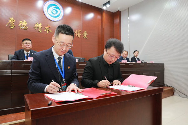 随后,武立刚院长与内、外科系代表签署《2026年科室综合目标质量绩效考核责任书》。