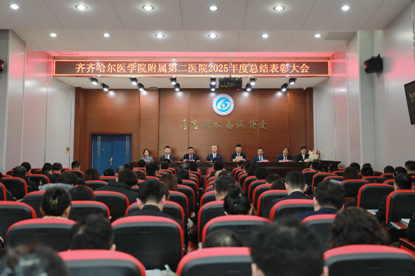 2月28日上午, 齐医学院附属第二医院隆重召开九届二次职工代表大会暨2025年度总结表彰大会,齐齐哈尔医学院党委副书记、工会主席迟沫涵同志莅会致辞,工会副主席张宝林同志应邀到会。附属二院党委书记刘增良同志讲话,院长、党委副书记武立刚同志作医院工作报告,党委副书记李亚洲同志主持会议,全体党委班子成员及全院132名正式代表齐聚一堂,共商发展大计,擘画医院高质量发展新蓝图。