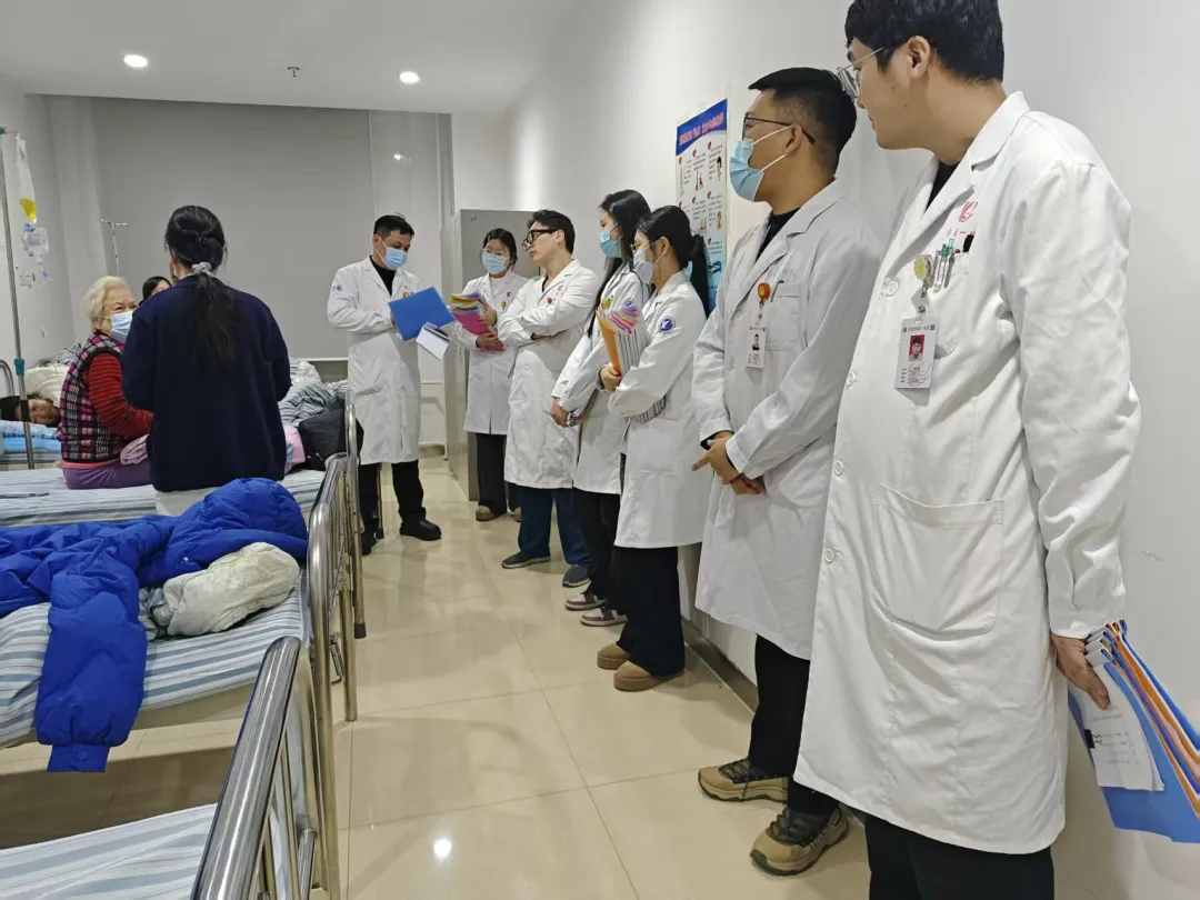 每日7:50的晨会交班,是她雷打不动的坚守。她认真倾听每一份病情汇报,细致追问每一项诊疗处置,耐心引导每一步临床思路。发现问题当场解决,遇到困难主动靠前,对医疗工作严谨至极,对年轻医师严格却用心良苦。而面对护士姐妹,她却满是温柔与呵护。曾有医生因工作急切,在走廊高声呼唤护士,她得知后在晨会上郑重提醒:“护士是我们最亲密的战友,要多一份温情、多一份尊重、多一份善待。”她用最直接的方式守护我们、认可我们、心疼我们,在她心中,医护同心才是一家人,彼此尊重才是真团队。