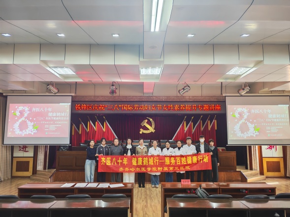 春和景明暖三月,巾帼芳华绽新颜。在第116个“国际妇女节”来临之际,为切实关爱职场女性身心健康,践行“健康中国”“健康龙江”战略,3月4日上午,我院医疗合作办公室携手铁锋区机关工委、铁锋区总工会、铁锋区妇女联合会,在铁锋区政府六楼会议中心开展主题为“齐医八十年 健康鹤城行——关爱职场女性健康,护航巾帼芳华绽放”健康科普义诊活动。铁锋区区直机关工委书记葛金波、铁锋区妇女联合会主席赵晓瑜、铁锋区总工会主席刘欣悦出席活动,我院妇一科、心理门诊、医疗美容科、体检中心专家为现场女性送上专业的健康服务与节日祝福。
