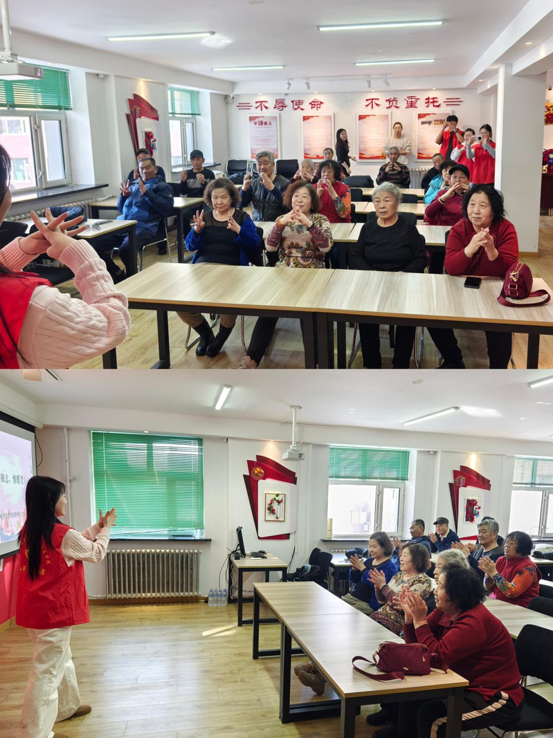 在社区活动中心,志愿者们为社区老人带来精心编排的手指舞表演,一边生动展示,一边耐心示范指导,手把手帮助老人学习动作。简单有趣的手指舞既锻炼了老人们的手部灵活性,刺激大脑反应,也在欢声笑语中为老人们送去陪伴与温暖,让代际之间的情感在互动中愈发浓厚。