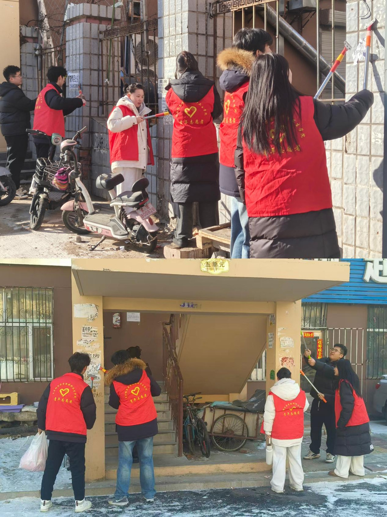 与此同时,另一组志愿者深入街巷楼宇,开展小广告集中清理专项行动。面对墙面、电线杆上层层粘贴的“牛皮癣”,志愿者们不怕脏、不怕累,手持铲子、抹布等工具,细致清理每一个角落,用实际行动守护社区环境,传播文明新风。