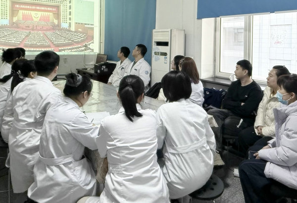 聚焦盛会,全院党员干部职工认真聆听,气氛庄重而热烈。全体党委班子成员聚精会神地盯着大屏幕,边看边记,不时为报告中提到的辉煌成就和宏伟蓝图鼓掌喝彩。医院职工热情高涨,热议不断。大家一致认为,2026年是“十五五”开局之年,也是全面建设社会主义现代化国家关键之年,此次全国两会的召开具有承前启后、继往开来的重大历史意义。政府工作报告高屋建瓴、思想深邃、催人奋进,全面总结了过去一年国家在复杂严峻形势下取得的来之不易的成绩,科学谋划了2026年经济社会发展的宏伟蓝图,尤其对“推进健康中国建设”、“深化医药卫生体制改革”作出了新的战略部署,为医院的高质量发展指明了方向。