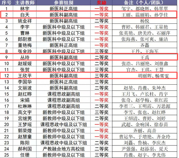 在刚刚落幕的齐齐哈尔医学院第六届教师教学创新大赛中,我院教学团队奋勇拼搏、不负众望,凭借扎实的专业素养与卓越的创新能力斩获佳绩:团队一等奖1项、二等奖1项、三等奖1项,同时荣获医学院优秀组织奖,彰显了医院深厚的教学实力与创新活力,是我院深化医学教育改革、推进师资队伍建设的又一重大成果。