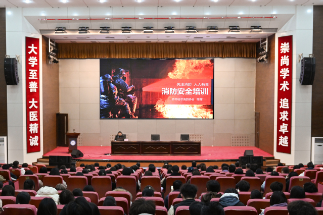 为进一步提升师生消防安全意识,增强火灾中的应急避险技能和自救互救能力,按照学院年度工作安排,3月11日下午,学院与齐齐哈尔市消防救援支队建华大队在图书行政楼二楼多功能厅,联合举办了开学安全第一课——消防安全知识专题讲座。市消防协会党支部书记陈晖担任主讲,各二级学院、研究生院学生辅导员、学生宿舍寝室长和学生代表260余人听取了讲座。讲座由学院保卫处副处长王天翔主持。