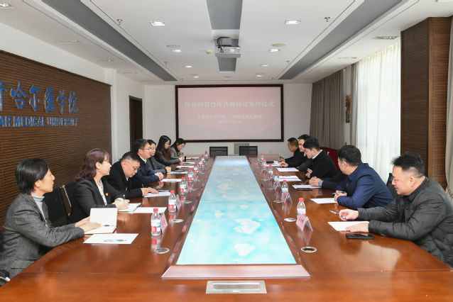 参观结束后,双方举行了座谈会。会上,裴俊瑞介绍了学院在人才培养、科学研究、社会服务及成果转化等方面的基本情况与发展优势。刘鑫宇介绍了汤旺县的县情概况、产业特色与发展规划,特别是其在北药大健康产业、生态旅游等领域的发展需求。在座谈交流环节,双方围绕多个维度进行了深入务实的探讨,在联合建设科技创新平台、共同推进科技成果就地转化、加强科研平台利用共享(特别是在生活饮用水、食品、粮食、环境等卫生检验检测领域)、共建道地药材标准化种植基地、设立实践教学基地、深化医联体建设推动优质医疗资源下沉,以及共建智慧病理服务共享平台以提升基层诊疗水平等方面,达成了广泛合作意向。双方一致认为,深化合作将有力助推汤旺县相关产业发展与公共服务能力提升,同时对学院科研成果转化与应用型人才培养也具有积极推动作用。