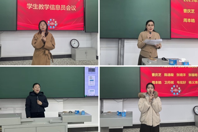 作为学院教学质量监控体系的重要组成部分,教学信息员是信息传递的枢纽、教学质量的监测哨、教学改革的助推器。会议要求,各位信息员要继续以高度的责任心,认真做好课堂教学信息的收集、整理和反馈工作,做到客观公正、实事求是、及时准确,既要发现教学中的亮点,也要精准反馈存在的问题;同时,要加强与任课教师、同学和教学管理部门的沟通交流,成为连接教与学的“连心桥”、提升教学质量的“监督员”。