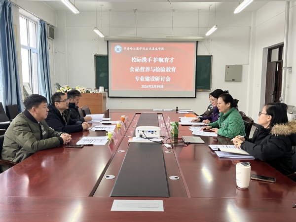 为进一步深化校际专业交流合作,优化食品营养与检验教育专业人才培养体系,提升专业建设质量与实践教学水平,3月19日,公共卫生学院组织召开食品营养与检验教育专业专题研讨会。本次研讨会特邀齐齐哈尔大学食品与生物工程学院副院长焦岩教授、食品科学与工程系主任王存堂教授、食品质量与安全系主任高建伟副教授莅临交流指导,公共卫生学院院长白丽教授、副院长程宇教授及专业全体骨干教师参会研讨,会议由副院长程宇主持。