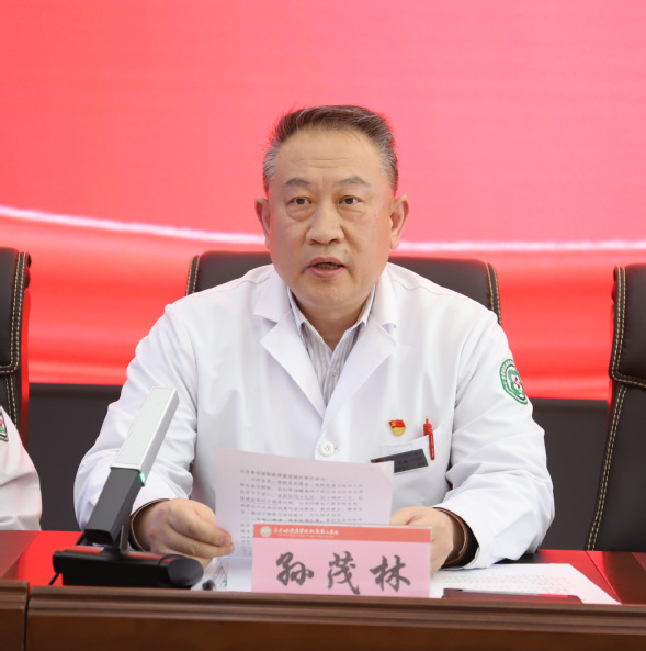 党委书记孙茂林讲话。他指出,此次会议紧扣“笃信、务实、担当、自律”主题,对全院干部能力作风建设工作进行全面部署,进一步统一思想、凝聚共识、压实责任,以过硬的能力作风为医院“十五五”规划开好局、起好步提供坚强保障。他强调,第一,凝心铸魂,筑牢信仰之基。要把党的创新理论学习作为首要任务,扎实开展树立和践行正确政绩观学习教育;第二,实干争先,砥砺攻坚之志。坚持需求导向、问题导向,践行“四下基层”、落实“五细”要求,沉到医疗教学科研一线、深入职工学生患者中间,围绕“十五五”规划制定、大型医院巡查整改、医疗质量提升、人才培养、教学科研、专科建设等工作开展专项攻坚,实打实解难题、办实事。;第三,正身律己,涵养浩然之气,严明党的政治纪律和政治规矩,坚守医德医风、师德师风底线,持续涵养风清气正的政治生态,让干部心有所畏、言有所戒、行有所止。