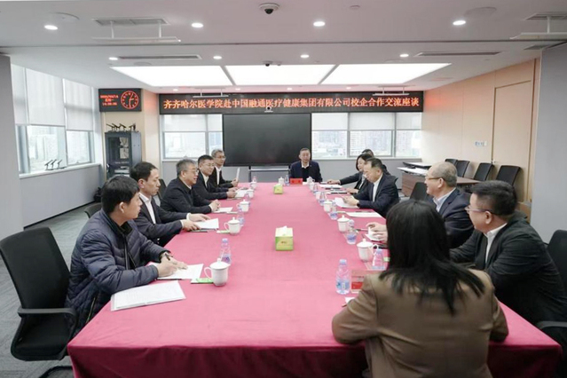 座谈会上,赵光介绍了齐齐哈尔医学院的发展历程、学科优势和人才培养、毕业生就业等情况。他表示,学院在临床医学、康复治疗学等领域的专业特色与融通医疗健康集团的发展方向和人才需求高度契合,希望校企双方建立常态化对接机制,将学院的教育资源优势与公司的产业平台优势紧密结合,共同服务国家医疗卫生事业发展大局。