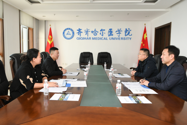 3月21日上午,双鸭山市人民医院院长张清峰、人事科科长霍金华一行2人来访,就校院合作事宜进行洽谈交流。学院副院长于海涛、教务处处长李强参加会晤交流。