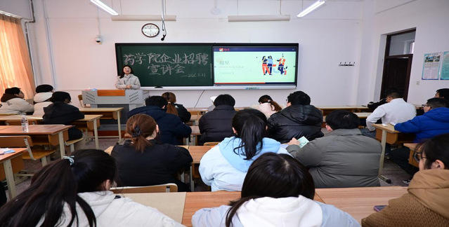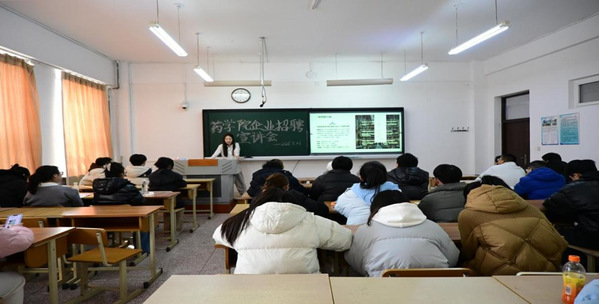 随后,药学院专场招聘宣讲会于主楼北区206教室顺利举办,本次宣讲会由辅导员李丹主持,超星集团有限公司、迪安诊断技术集团股份有限公司、北京永辰医学研究院三家优质单位受邀进行宣讲。宣讲环节中,各企业代表立足行业发展趋势,细致解读岗位需求,同时全面介绍核心业务板块、市场布局与未来战略规划,帮助同学们清晰把握行业发展前景。在互动交流环节,各单位针对学生关切的简历优化、职业能力要求等问题逐一答疑解惑,进一步拉近了学生与职场的距离。