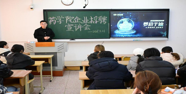 为深入贯彻国家及黑龙江省关于高校毕业生就业工作部署,扎实推进访企拓岗促就业专项行动,精准对接省内医疗、医药、科研机构人才需求,3月21日,药学院以“校园双选会+专场招聘宣讲会”双模式联动,为2026届毕业生搭建就业桥梁,同步深化产教融合合作,全力护航毕业生高质量就业。