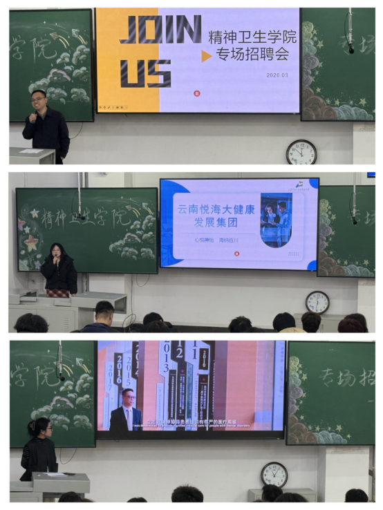 为扎实推进2026届毕业生高质量就业,精准拓宽专业对口就业渠道,3月21日,精神卫生学院在北区115举办2026届毕业生留省就业宣讲和专场招聘会,11家省内外用人单位受邀参会。会议由学院党总支副书记刘兴来主持,100余名2026届毕业生参加会议。