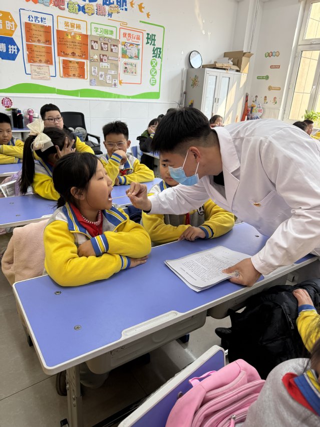 活动伊始,口腔医学院的党员志愿者们为长庚小学的学生们进行口腔健康义诊。通过口腔检查、健康咨询、护牙知识科普等形式,耐心为孩子们讲解龋齿预防、正确刷牙方法等知识。党员们以扎实的专业素养和温暖的服务态度,践行着“我为群众办实事”的初心使命,彰显了医者仁心与党员担当。