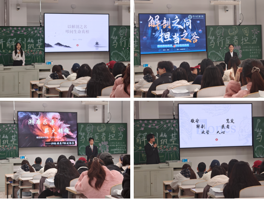 3月25日,由基础医学院主办,基础医学院第一党支部、共青团基础医学院委员会、齐齐哈尔医学院生命科学馆联合承办的“生命科学杯--第七届解剖学演讲比赛”,在教学主楼北区102教室如期启幕、温情绽放。由解剖学教研室教师组成专业评审团,以严谨的专业视角、公正的评判标准全程护航,百余名师生齐聚现场,共赴这场兼具专业深度与人文温度的医学盛宴,一同见证青年医学生的风采与担当。