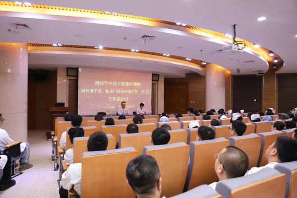 为进一步统一思想、凝聚共识、压实责任,确保工作平稳交接,引导全体新任职干部全身心投入医院各项核心事业工作中,3月26日上午8点30分,我院在住院综合楼三楼第一会议室召开2026年中层干部集中调整副科级(副主任)、护士长任职集体谈话会议。医院领导班子成员出席会议,全体新任职副科级(副主任)、护士长及相关职能科室工作人员参加会议。党委副书记张娜主持会议。