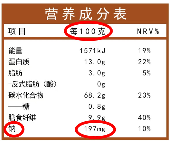 食品外包装上的营养成分表会标注每100克或每份食品的钠含量。