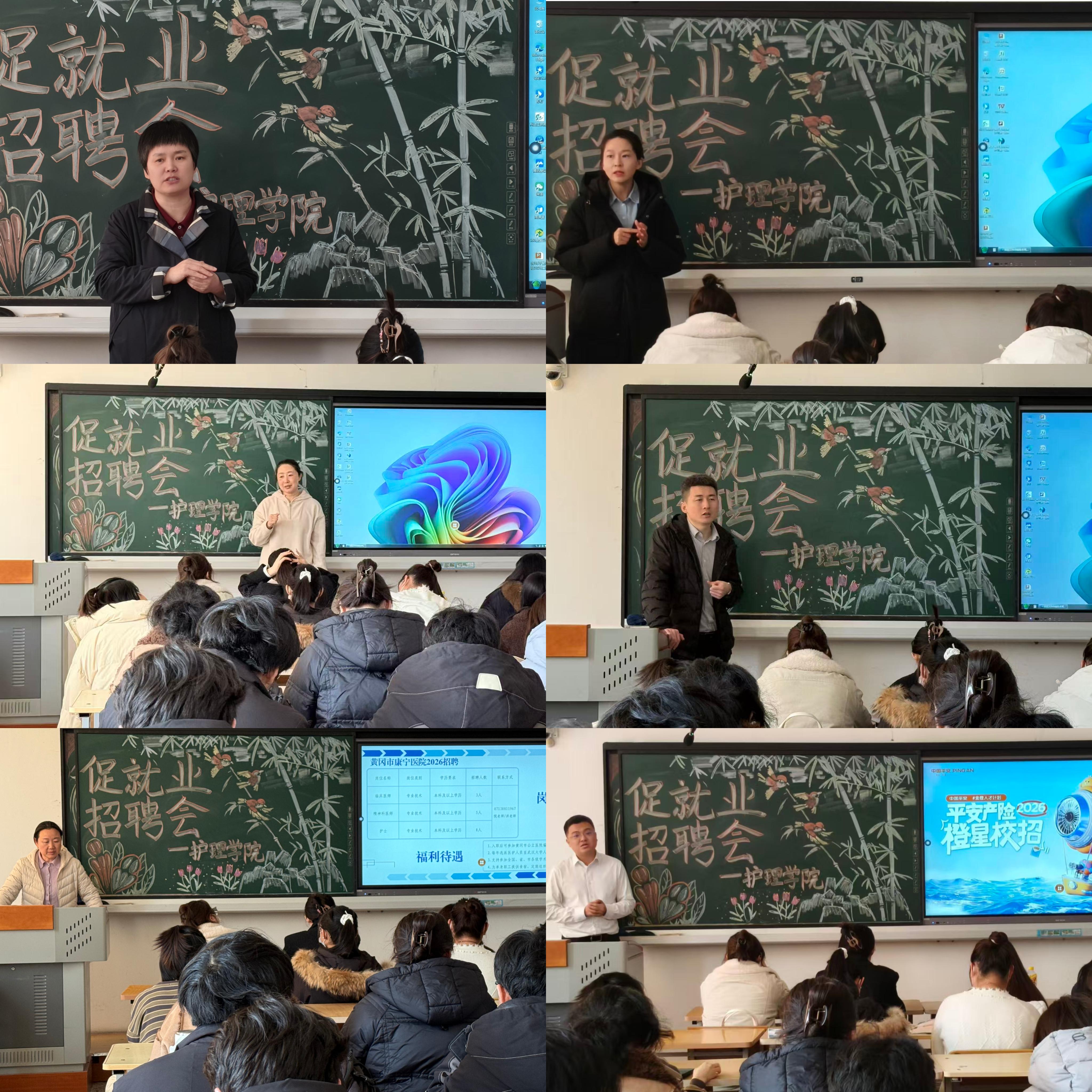 宣讲会上,黑龙江明水康盈医院有限公司、本溪市中心医院、黄岗市康宁医院、中国平安保险单位、海林市静心医院五家用人单位依次宣讲,围绕单位发展概况、岗位设置、薪酬待遇、培训体系及职业发展前景等内容进行了细致讲解,使在场学生对用人单位有了更为立体的认知。